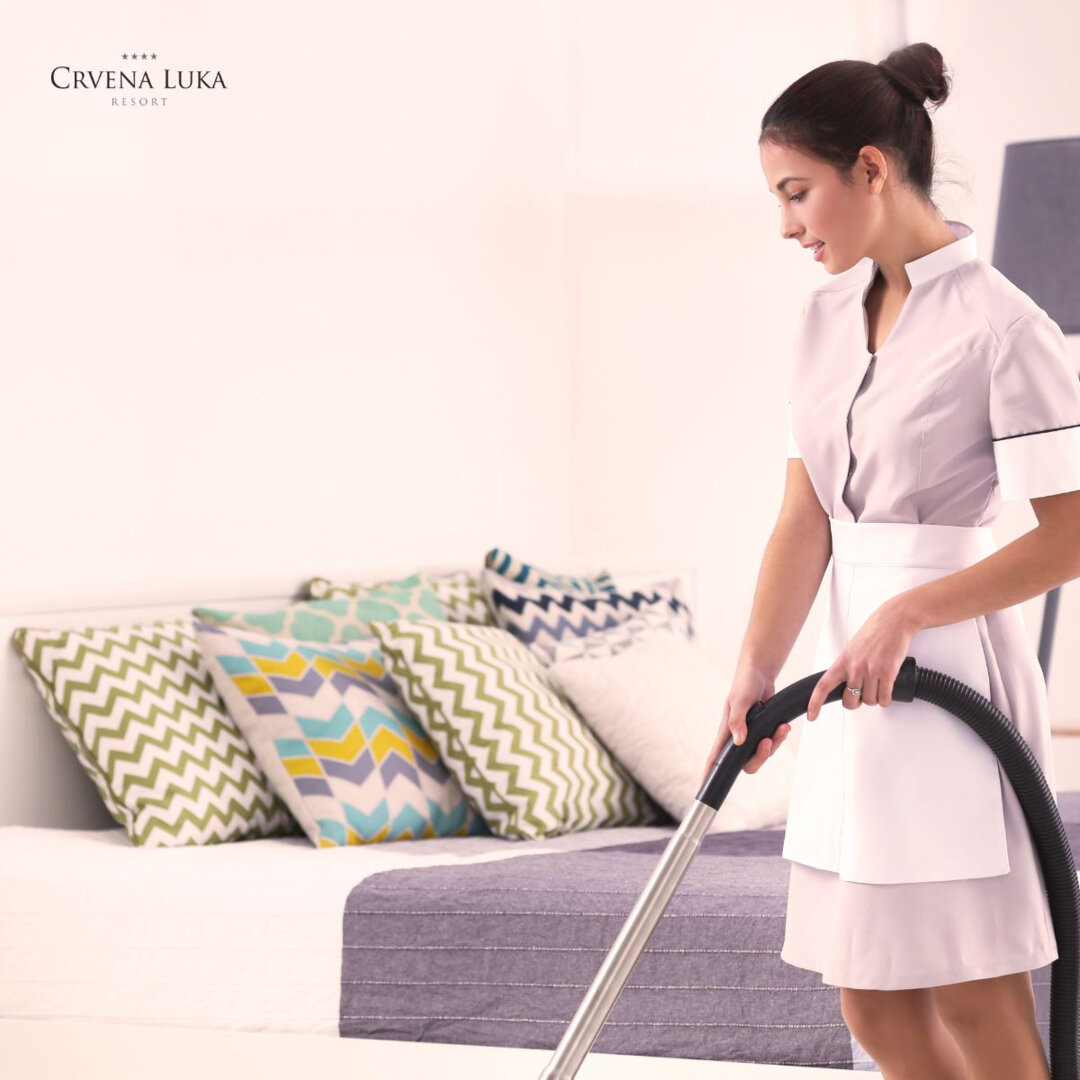 Održava urednost, čistoću i visoku razinu higijene soba, javnih i servisnih prostorija unutar i izvan hotela.